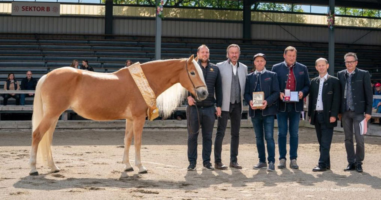 STERNENGOLD aus der Zucht von Hermann Gruber wurde Weltsieger in der Kategorie "Hengste jung". Für diese herausragenden Verdienste in der Pferdezucht wurde den Züchtern Romed Posch und Hermann